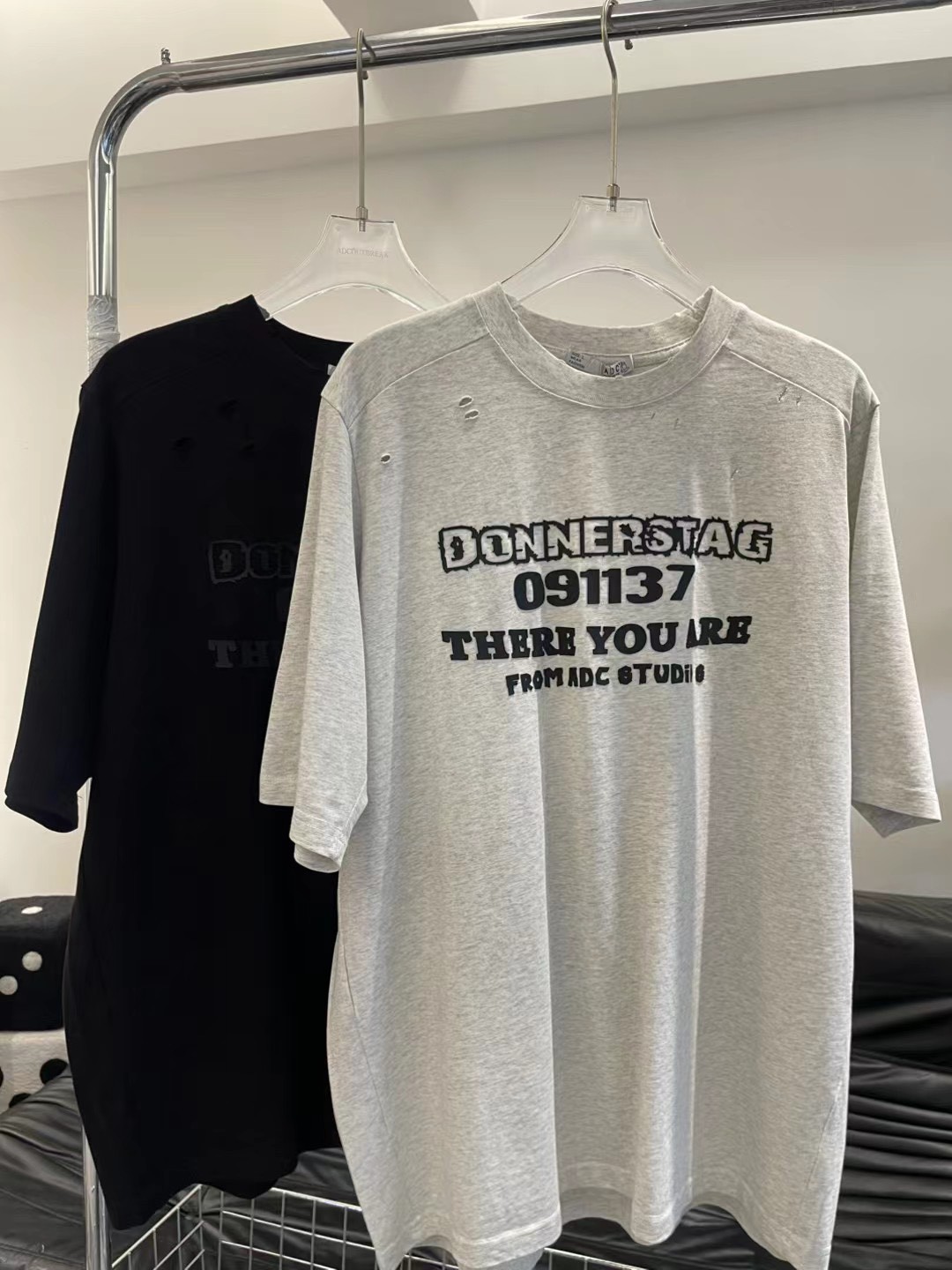 【情侶必帶!!】英文字特殊剪裁磨破重磅T