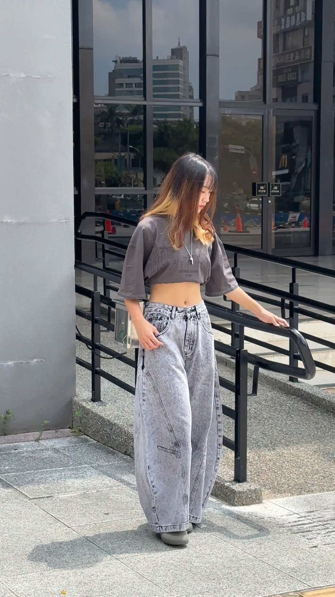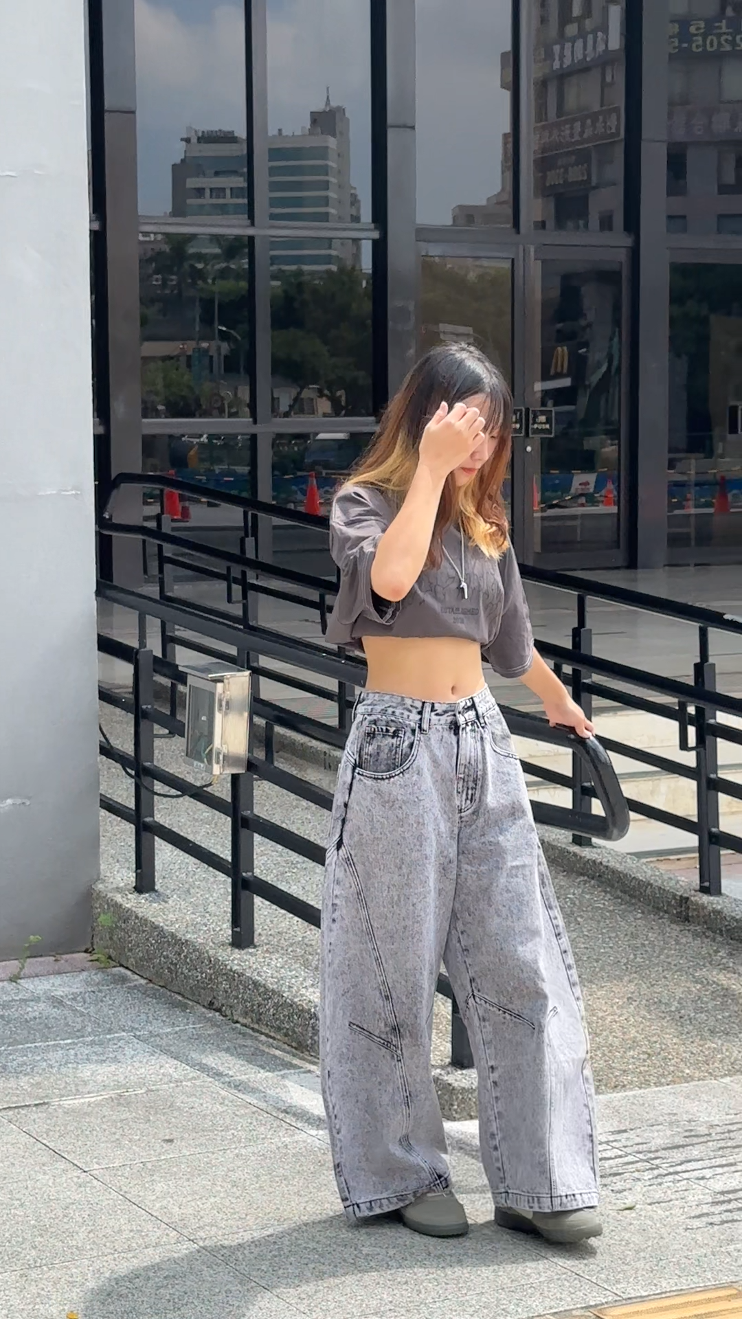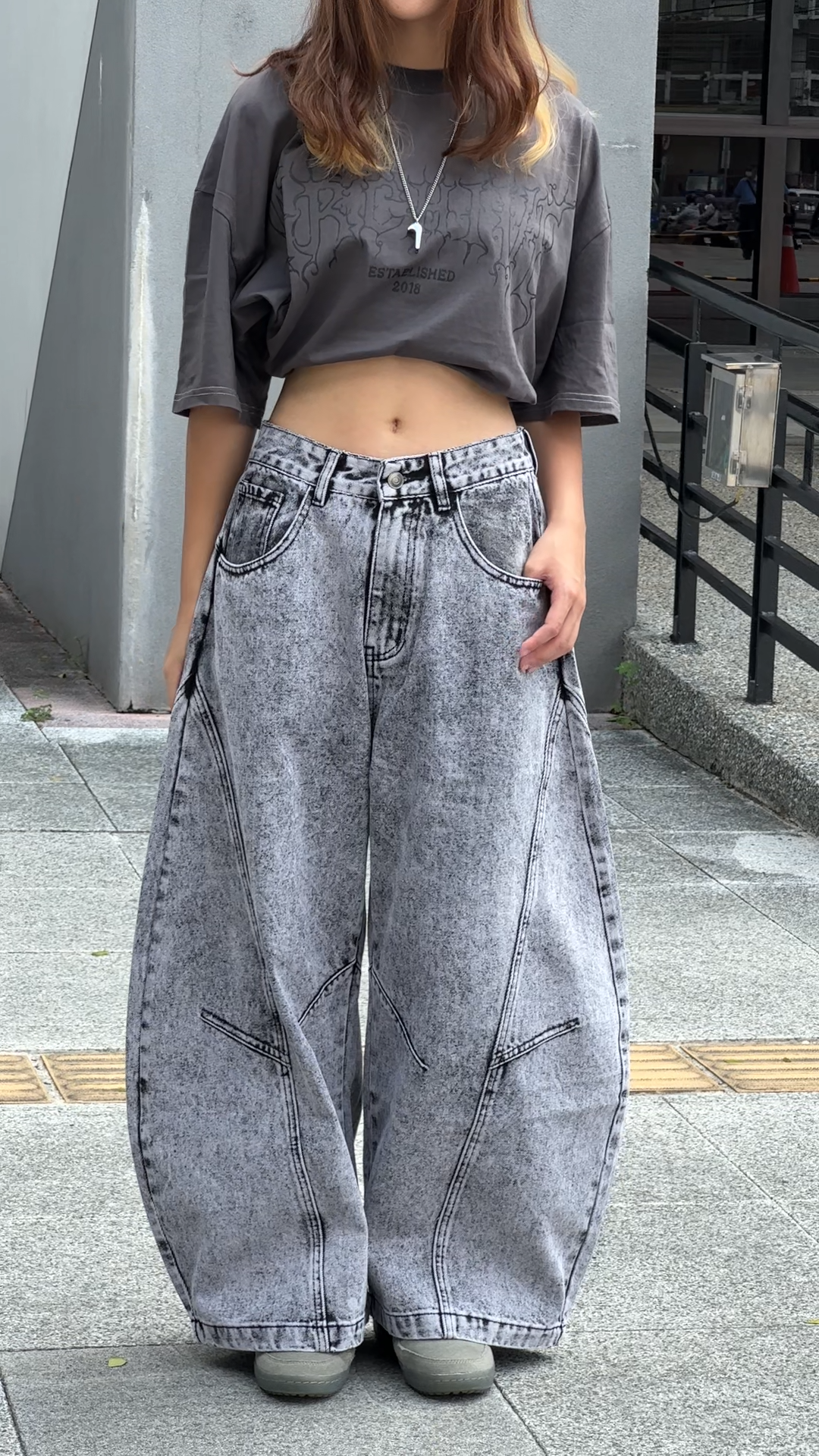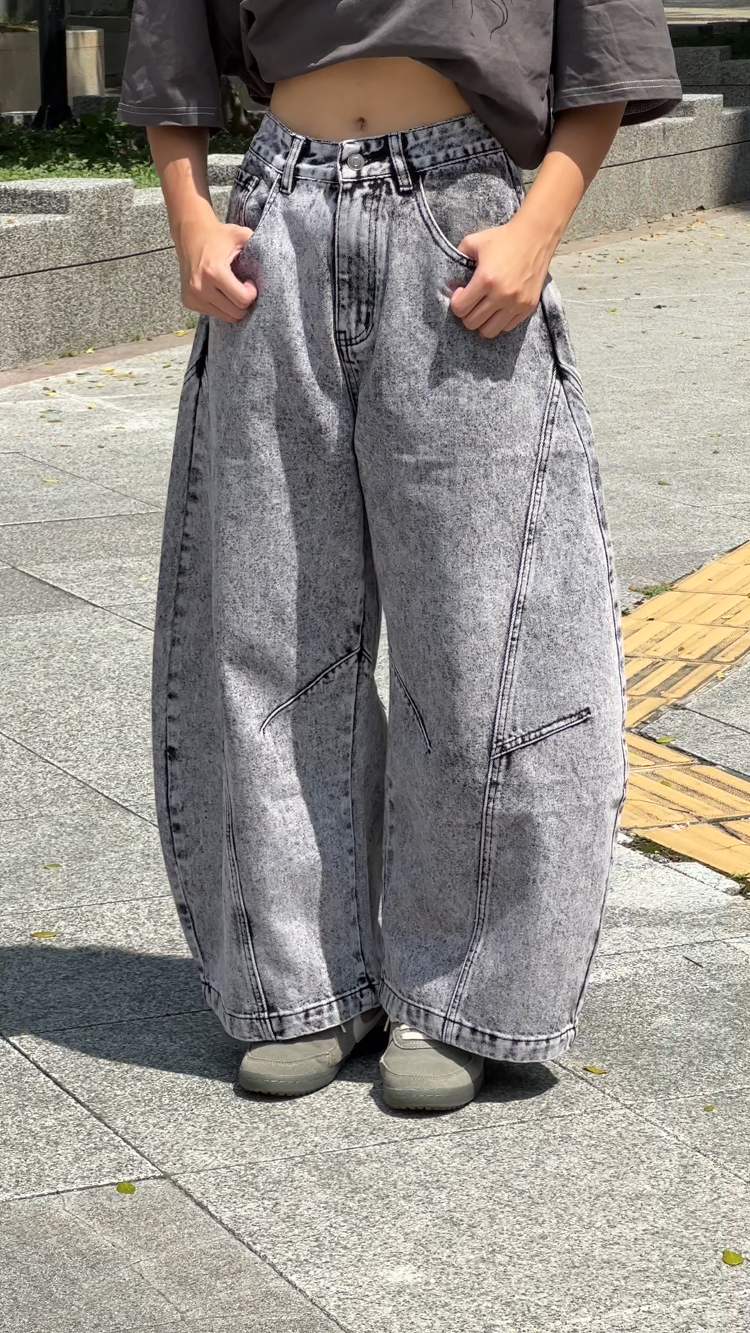【爆款現貨】灰隕星塵刷色彎刀褲