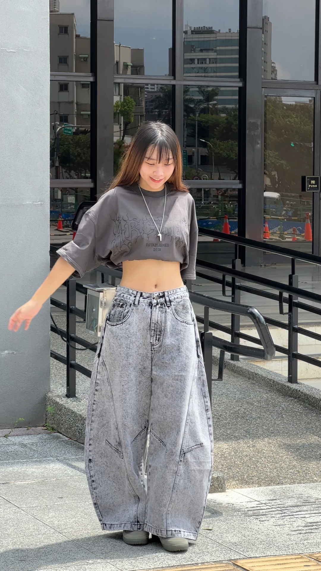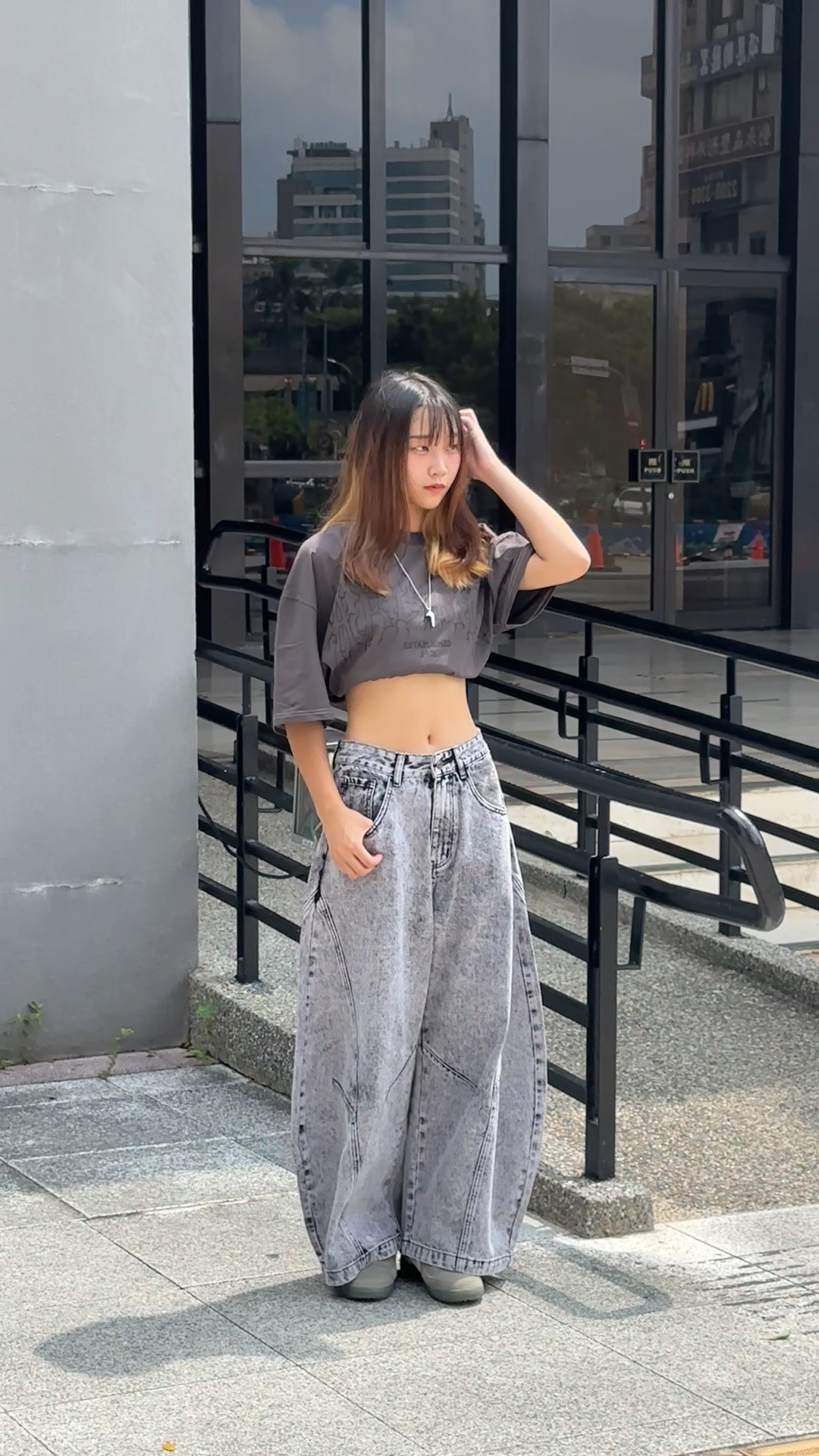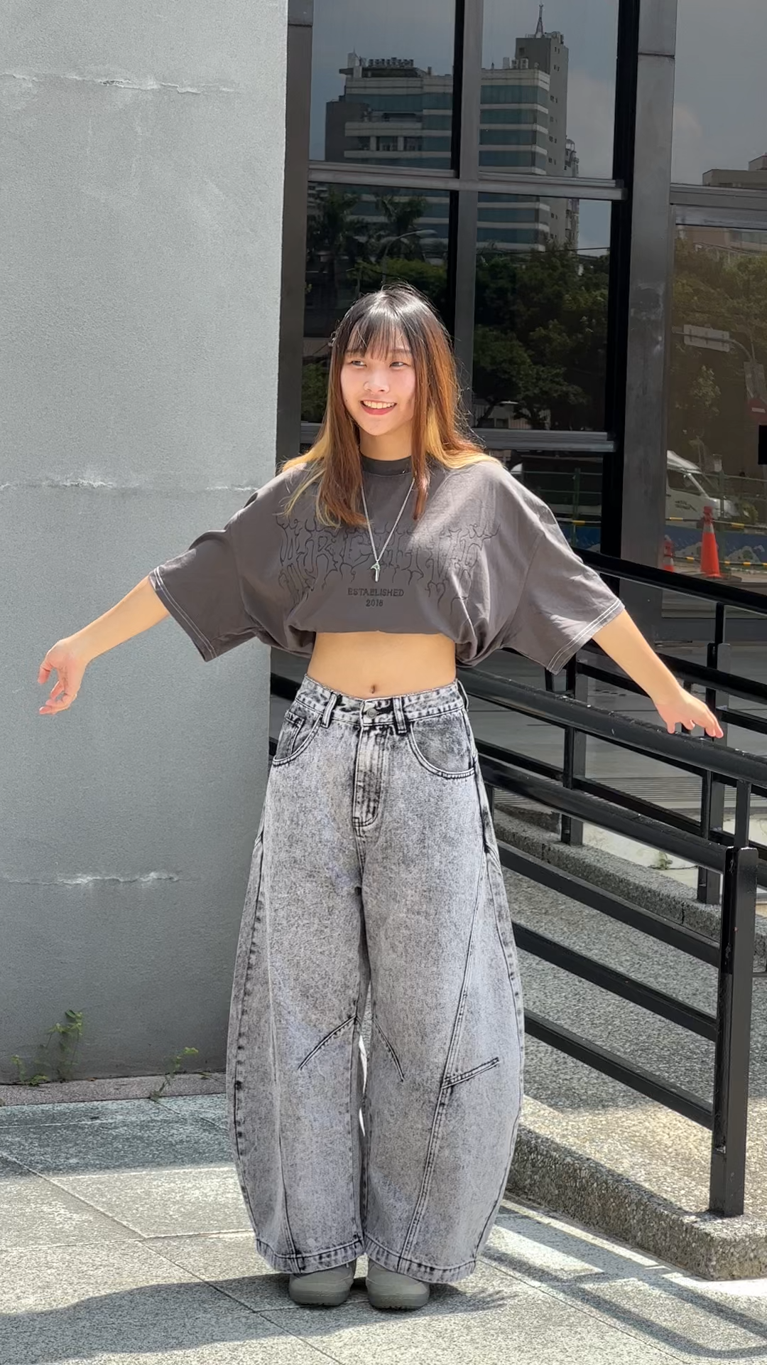 【爆款現貨】灰隕星塵刷色彎刀褲