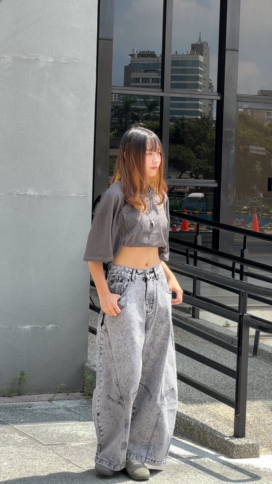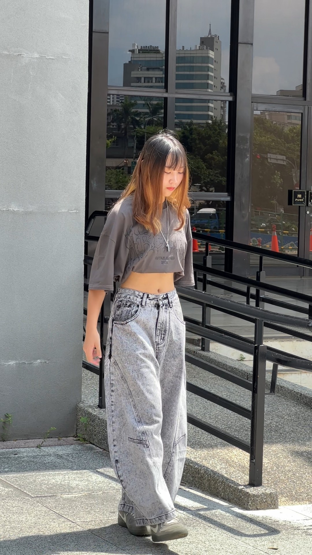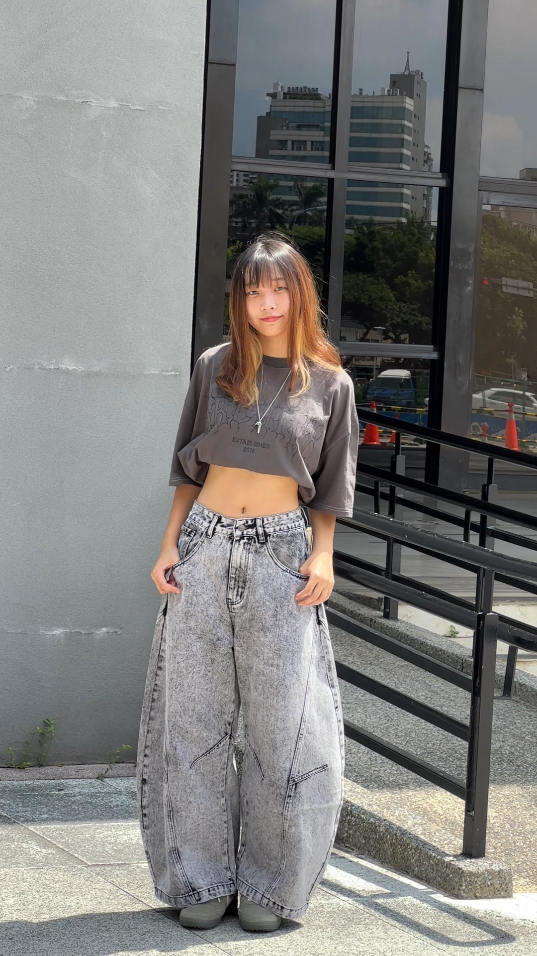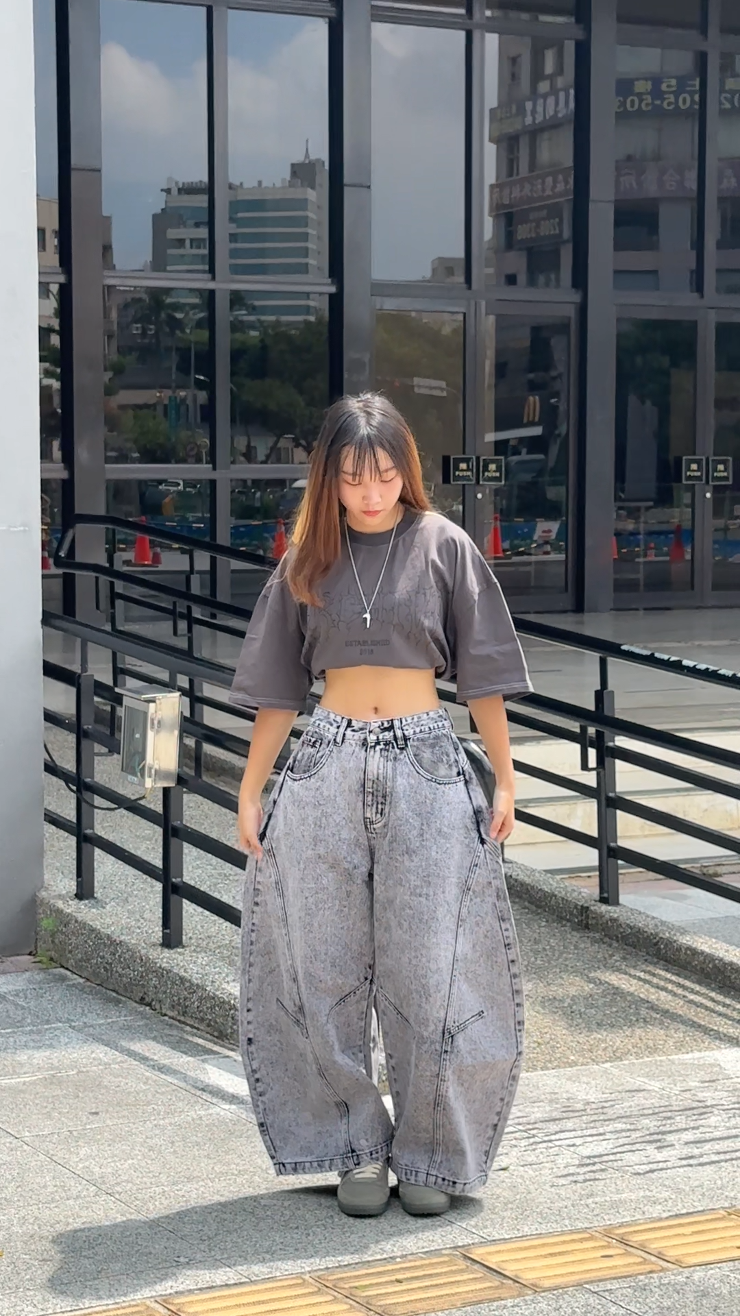 【爆款現貨】灰隕星塵刷色彎刀褲