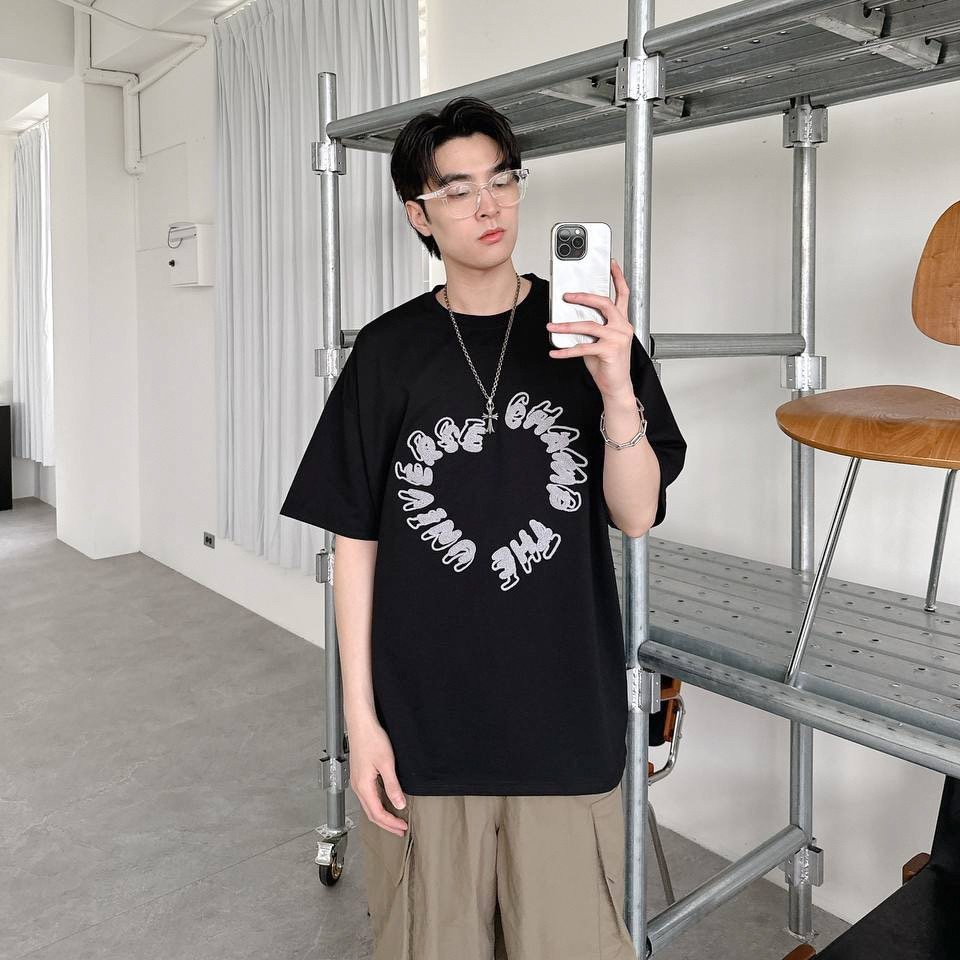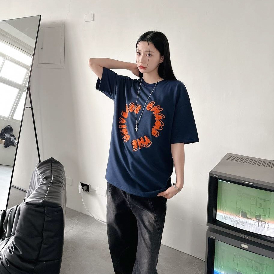 【現貨】圓環英字毛巾繡短T