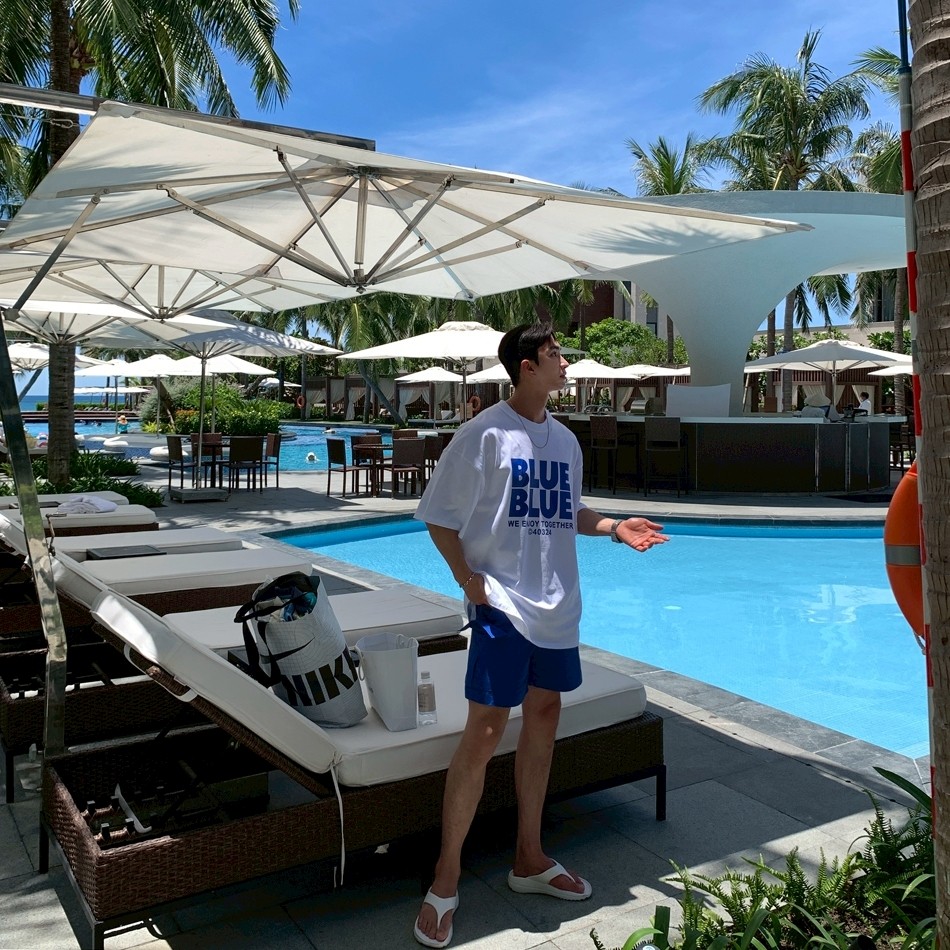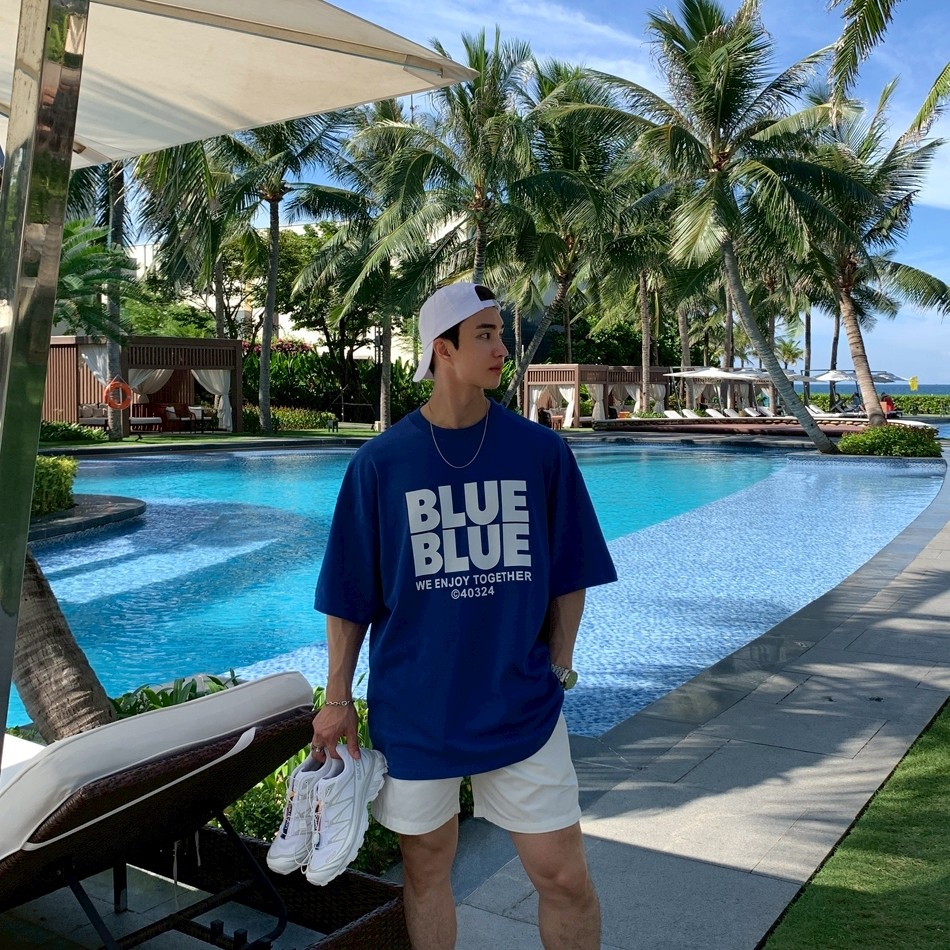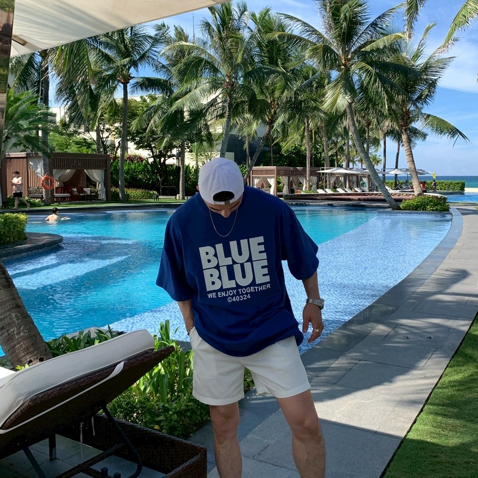 【現貨】夏日陽光BLUE字母短T
