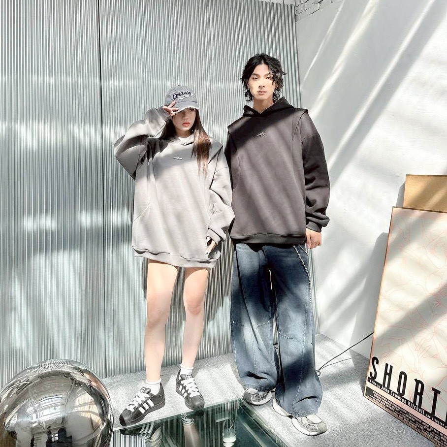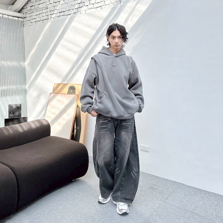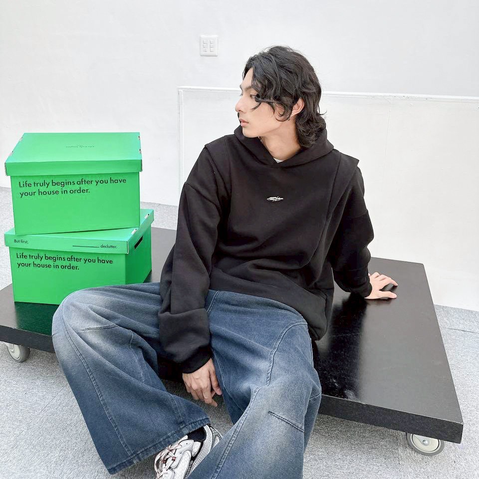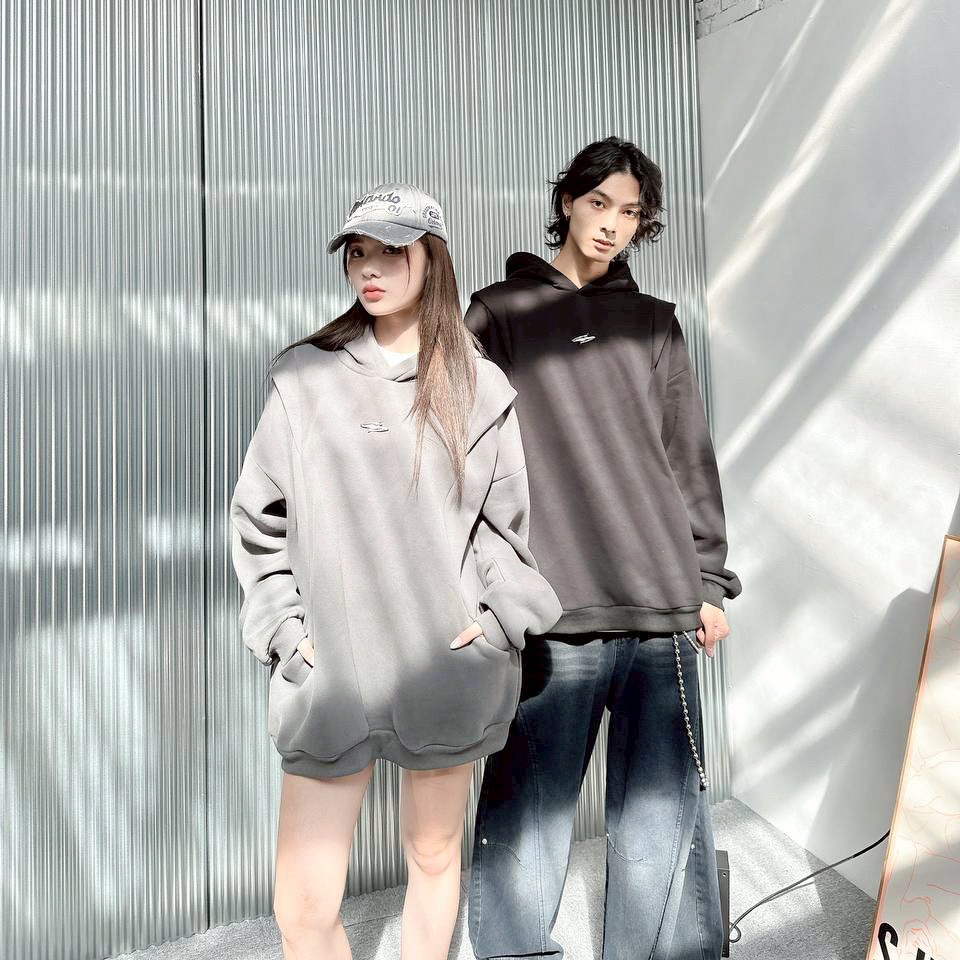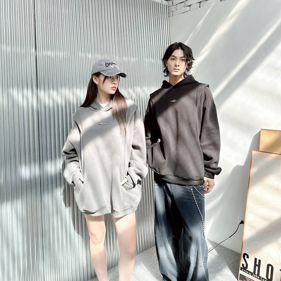 【現貨】金屬感解構剪裁帽T