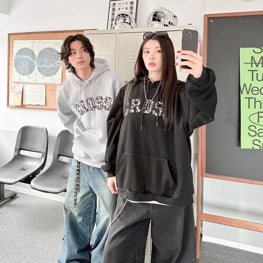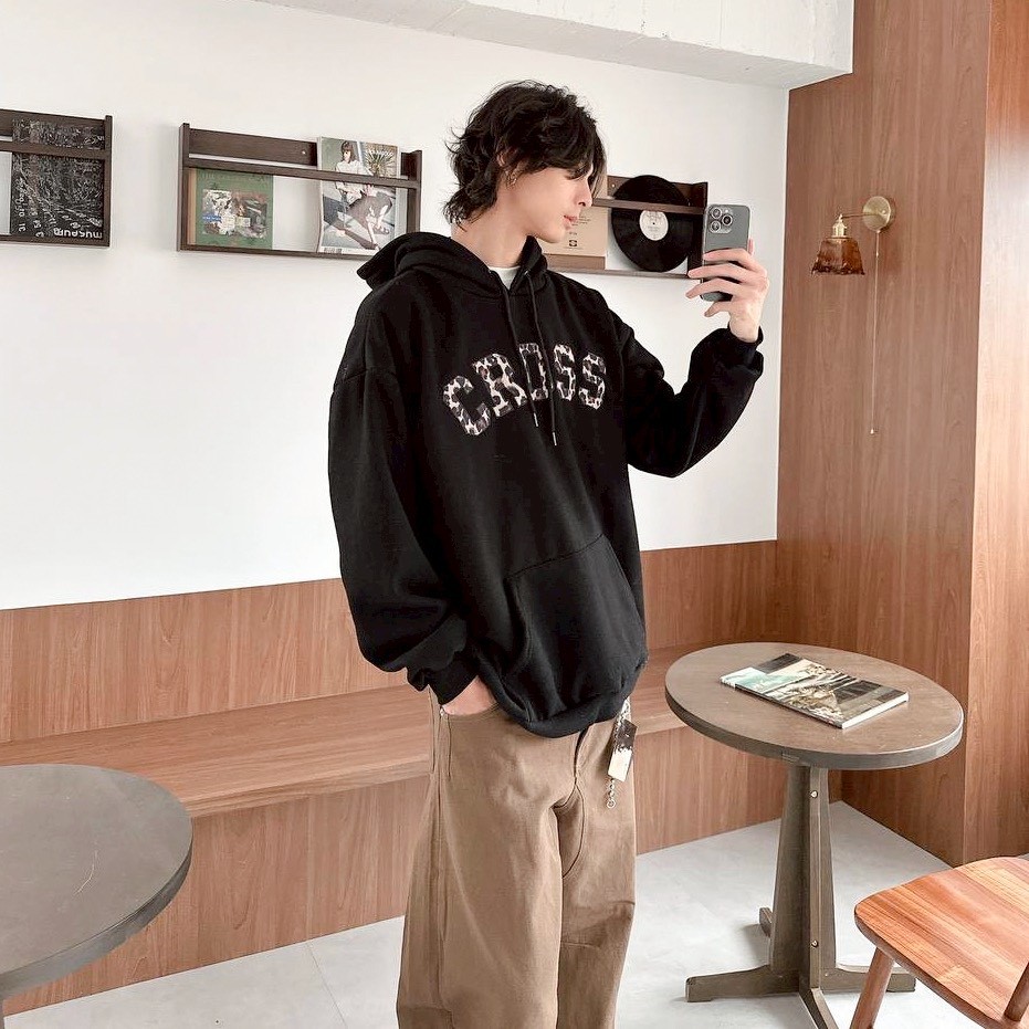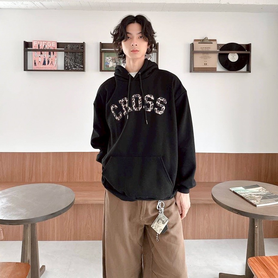 【現貨】CROSS刺繡豹紋帽T