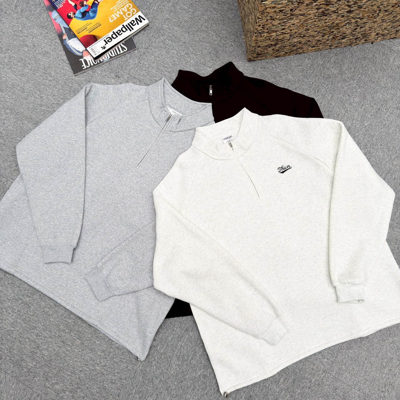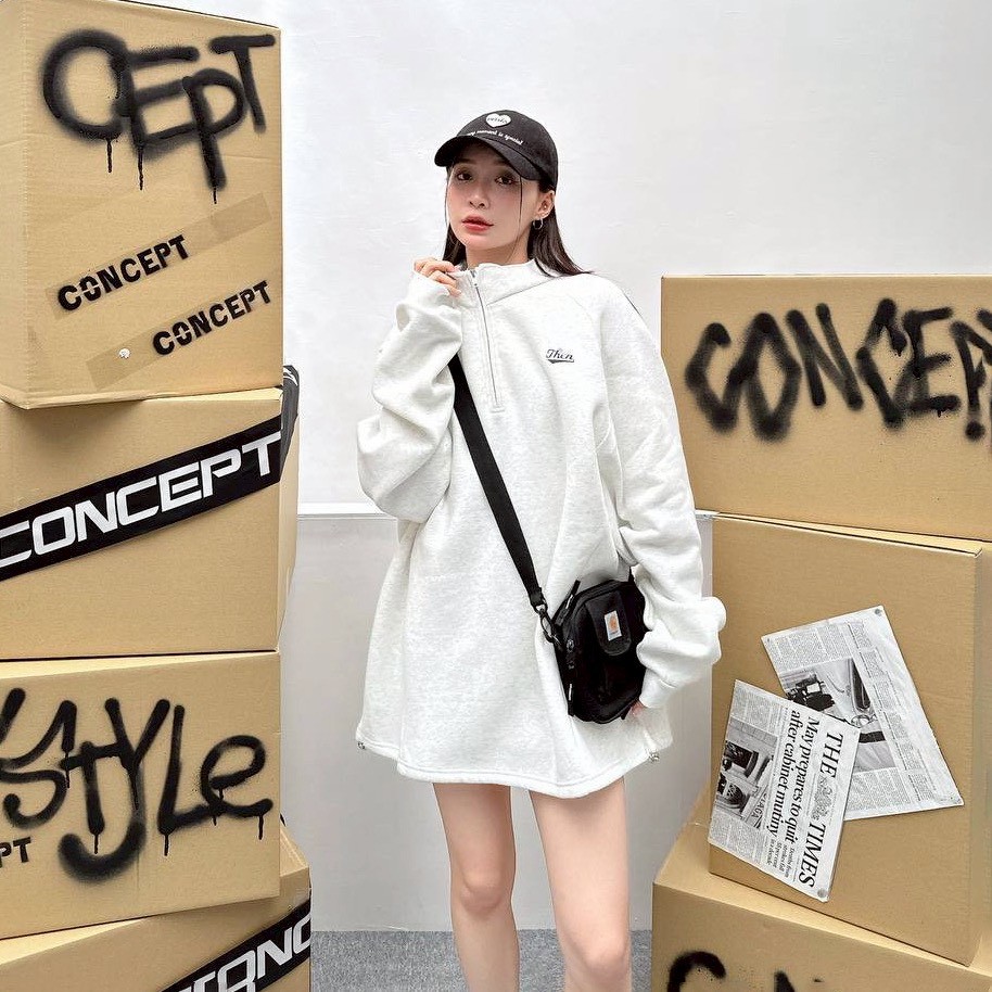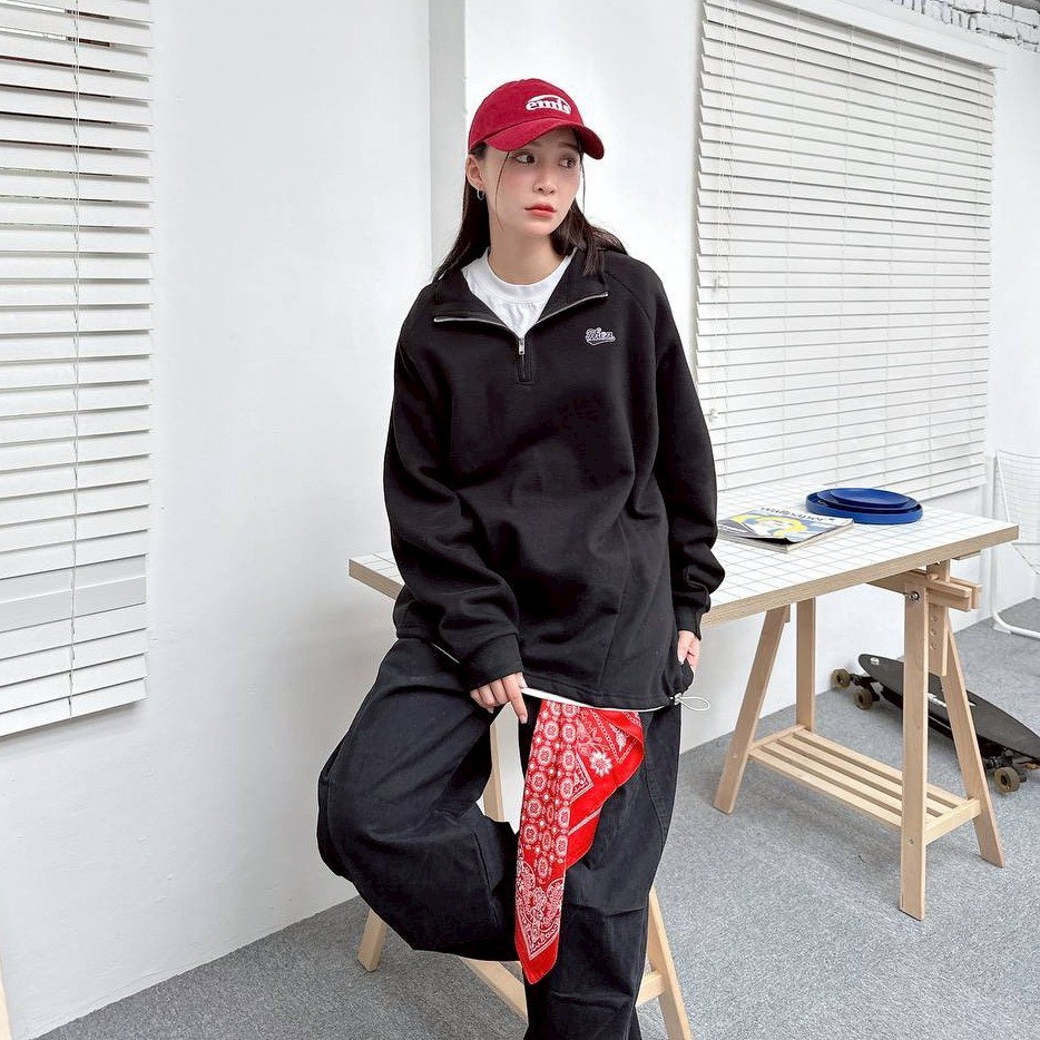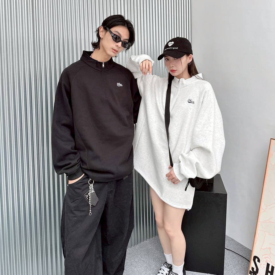 【現貨】Then刺繡立領拉鍊衛衣