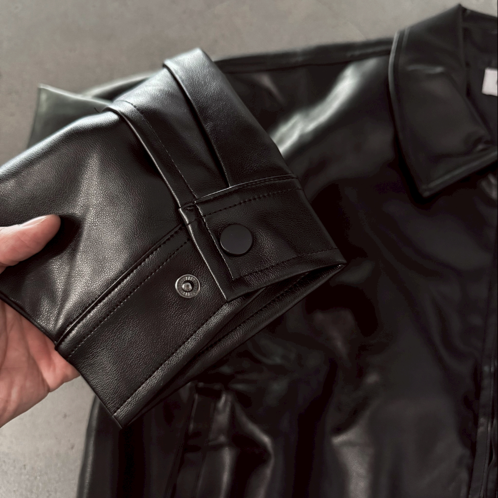 【皮革質感單品】街頭短版BOXY皮革夾克外套