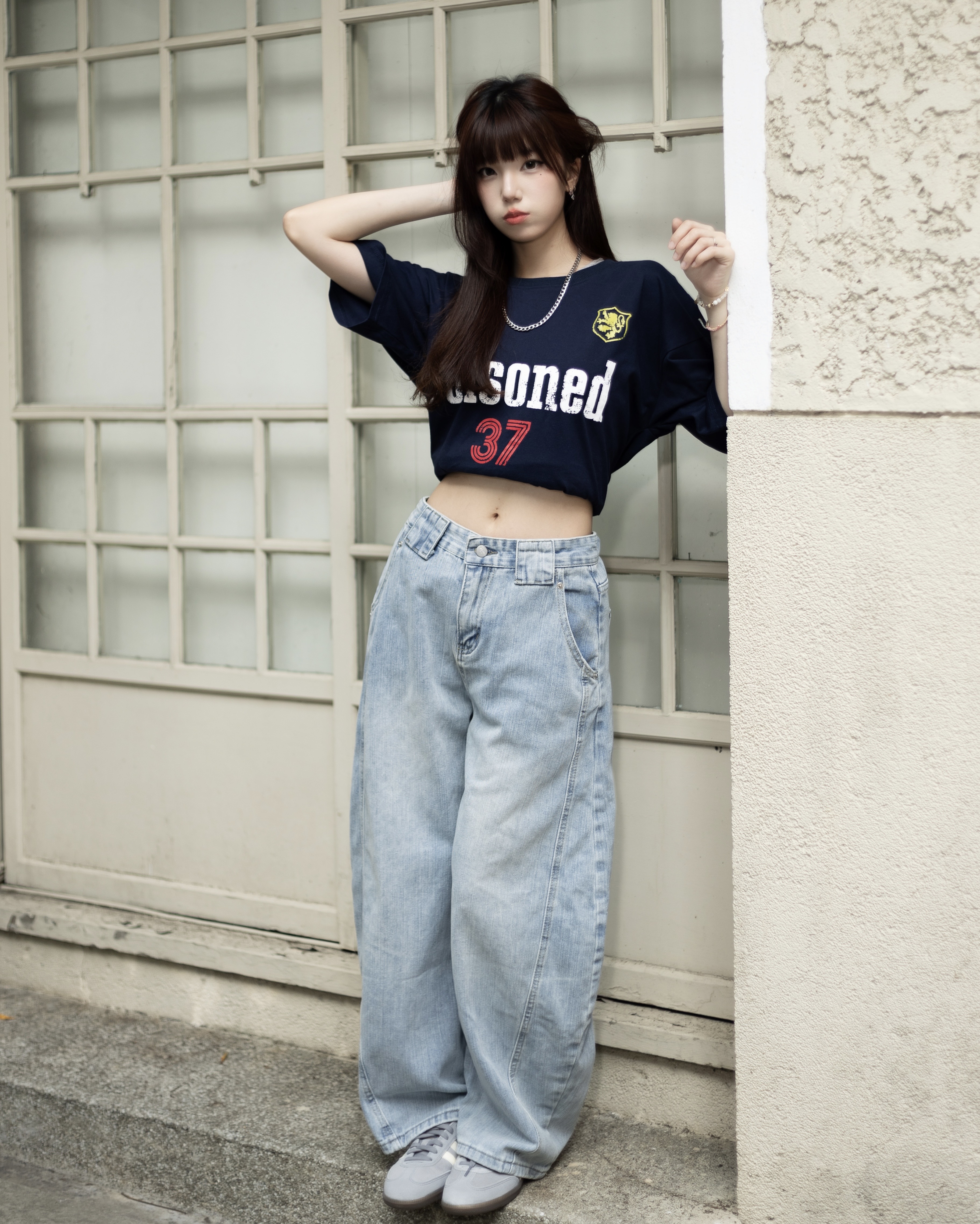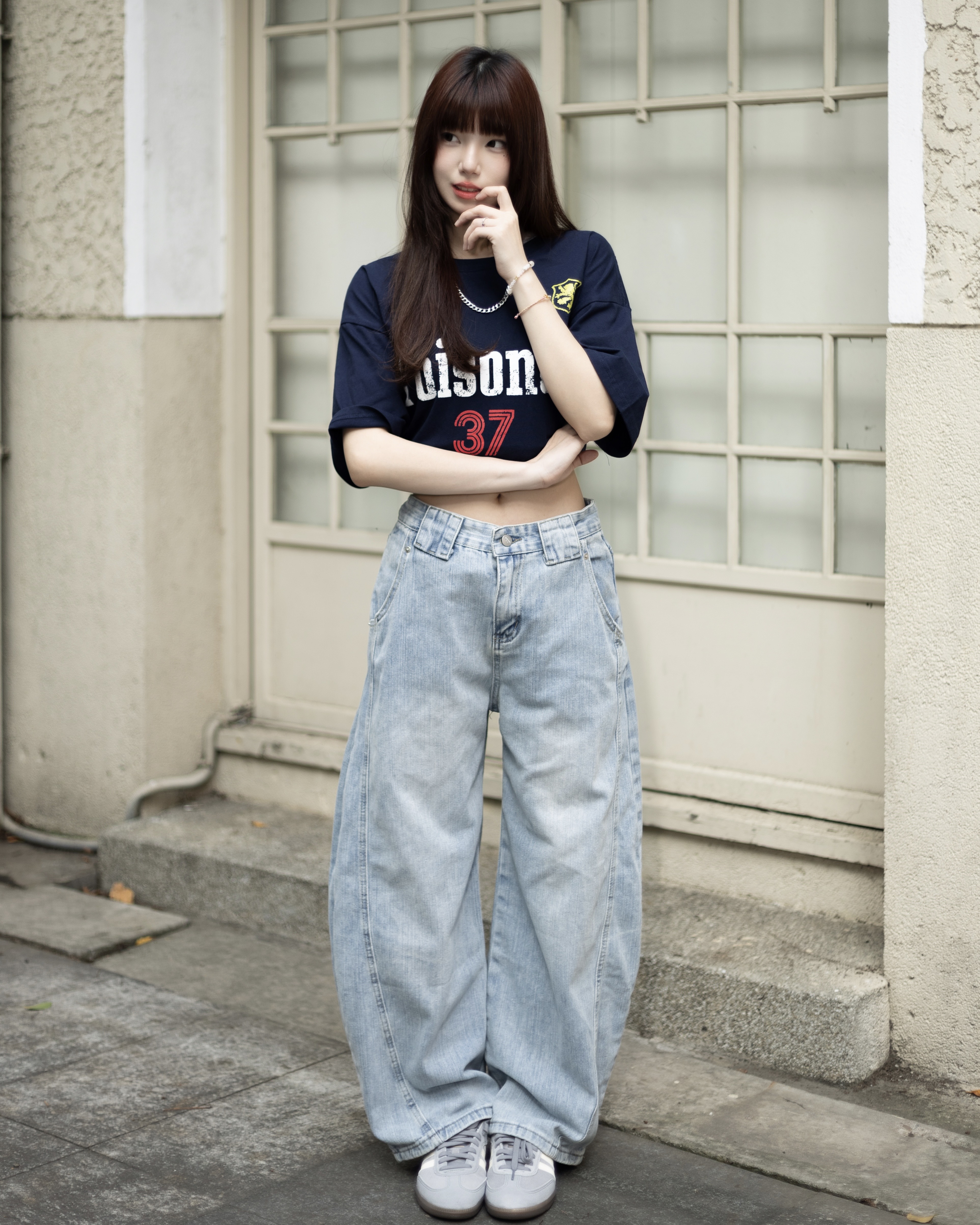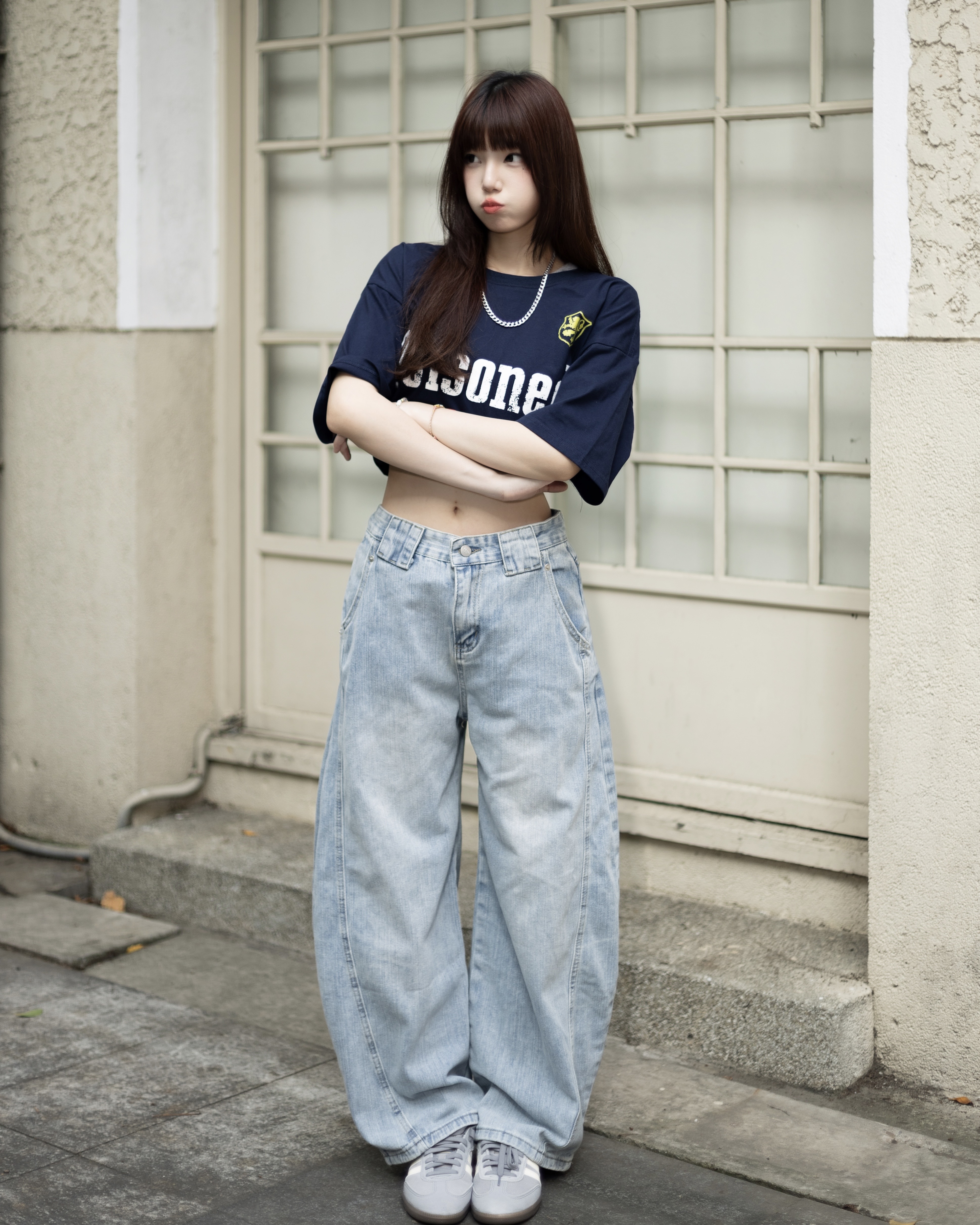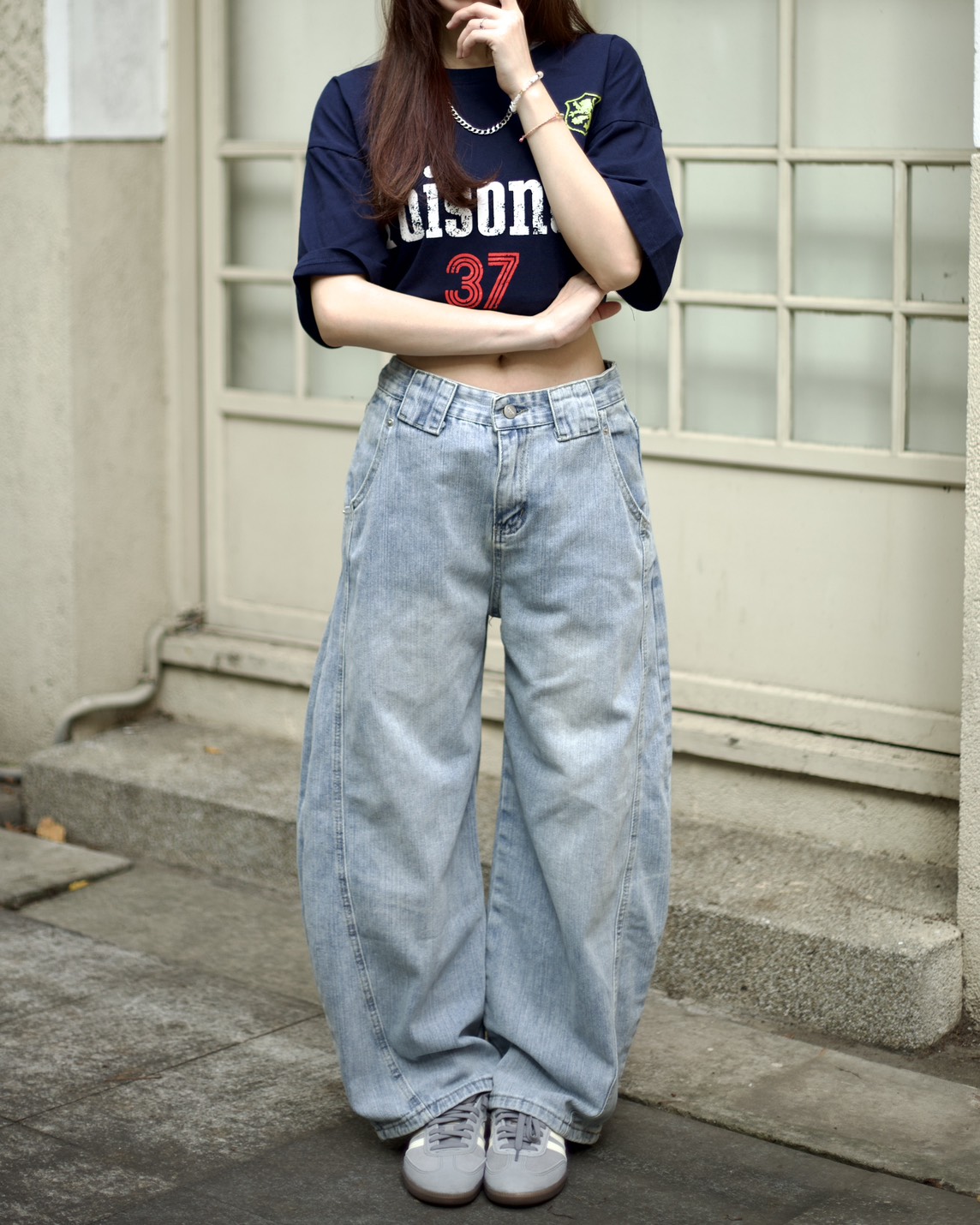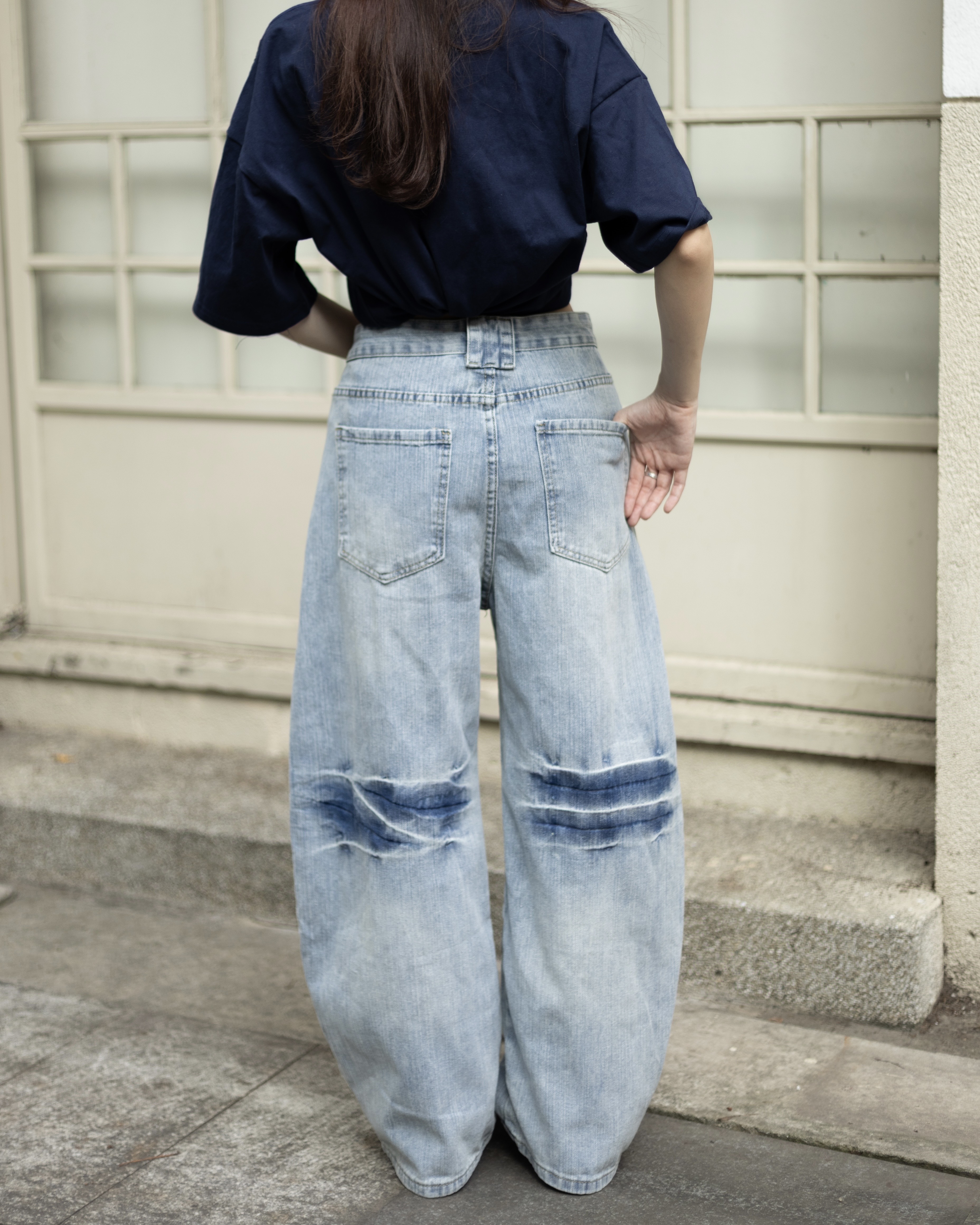 【隨意卻吸睛!!超強神款】裂痕直刷紋彎刀牛仔褲